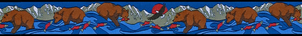 Alaska's diverse inhabitants include the largest population of brown bears in North America, with an average coastal density of 1 per square mile! Distinguishable in part by their dish-shaped face & sizeable shoulder hump (a mass of muscle helping to power their front legs), these awe-inspiring creatures can reach weights exceeding 1000 lbs. Feeding on the abundance of salmon, berries, & lush vegetation, brown bears living on Alaska's central & southern coasts grow significantly bigger than their inland cousins. In preparation for the long winter months they will spend in hibernation, these coastal brown bears can consume up to 90 lbs of food per day. Designed exclusively for Copper River Fleece by Cordova, Alaska artist Susan Ogle, this trim is named after one of the most unique places in the world to watch these feeding giants: Brooks Falls in Alaska’s Katmai National Park, where unusually large gatherings of brown bears congregate to feast on migrating salmon jumping up the falls. Masterful fisherman, these bears display a variety of fishing styles and techniques, which are typically passed down from mother to cub.